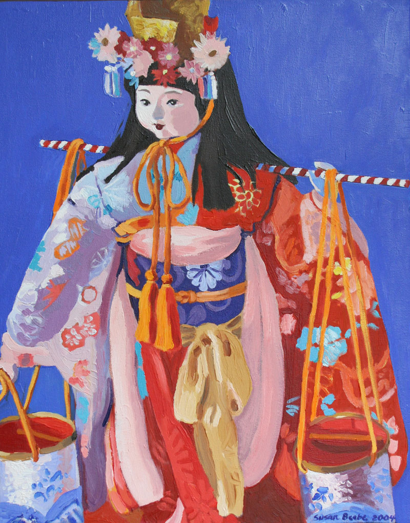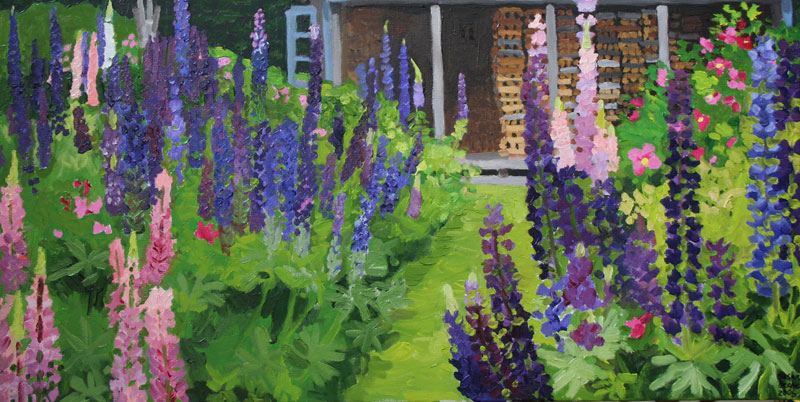 “Hollyhocks” oil on canvas 48 x 24 inches by Susan Beebe 2006