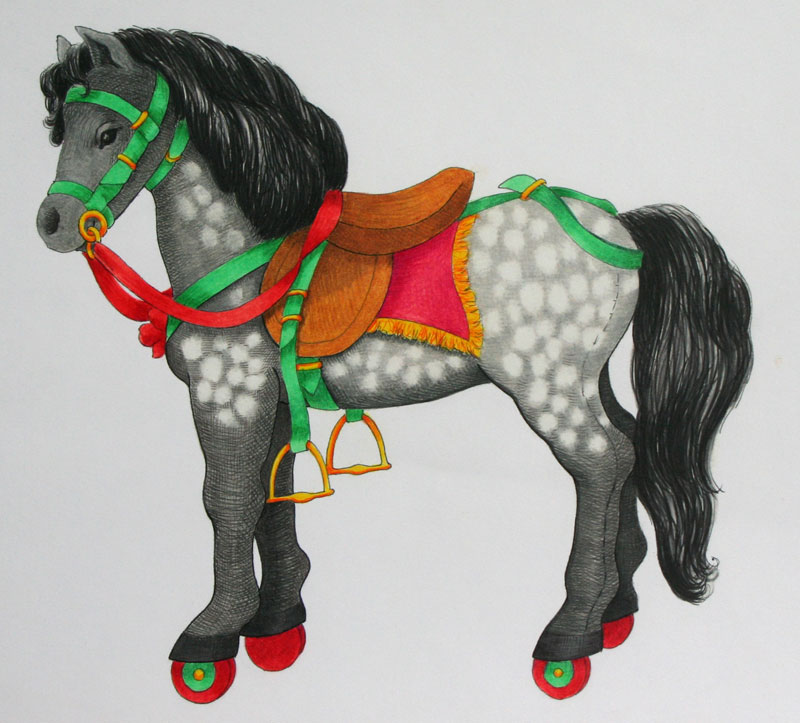 “Horse pull-toy” colored pencil on paper by Susan Beebe