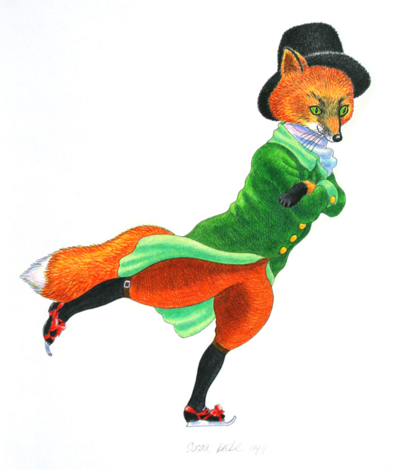“Fox, skater” colored pencil on paper by Susan Beebe