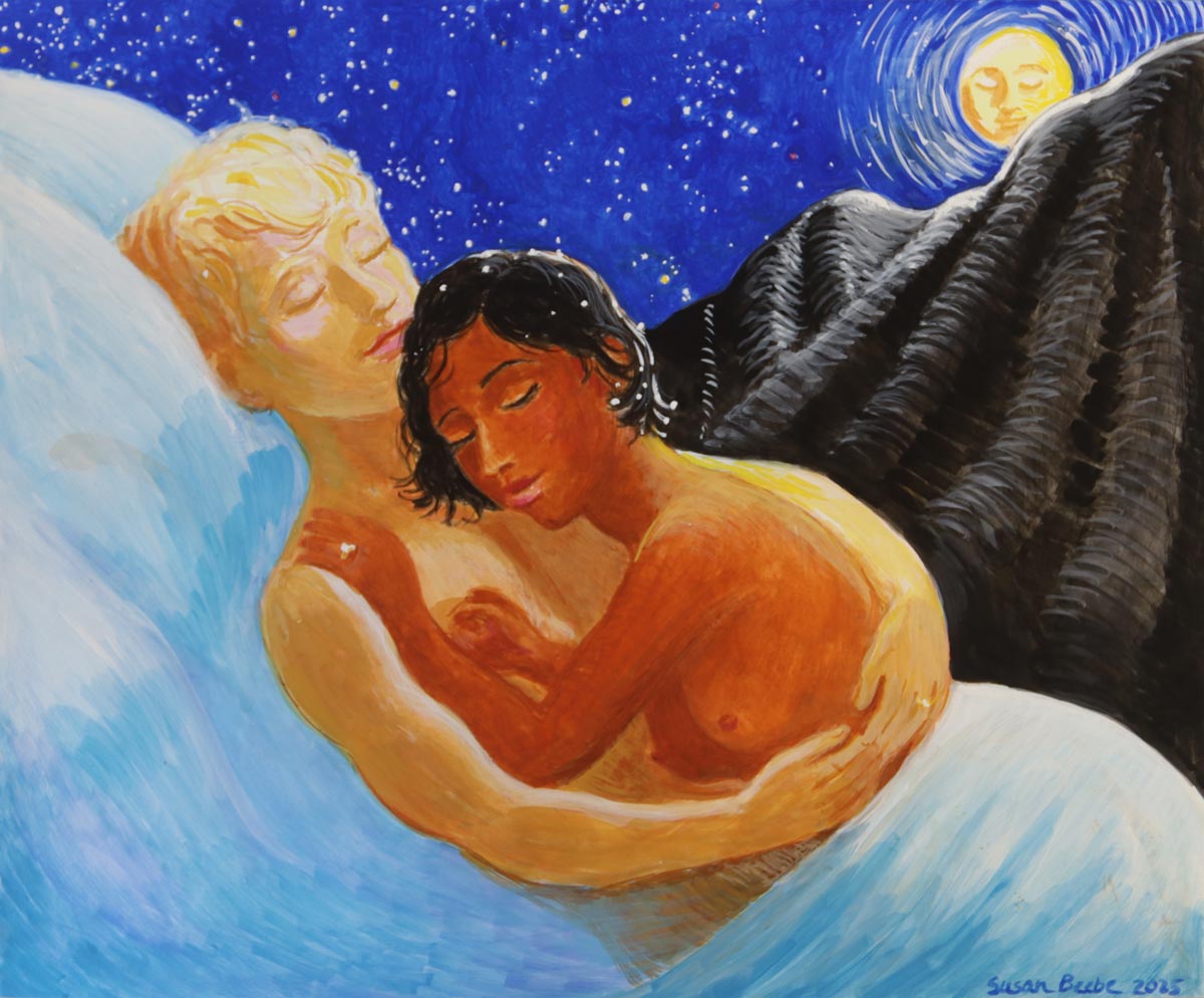 B.R. Myers (left) and Susan Beebe at the opening of “The Rogue Princess Suite,” October 25, 2024, Rockland, Maine